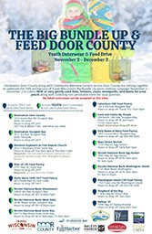 Eight different tourism organizations in Door County have committed to participate in this year’s “Big Bundle Up and Feed Door County” youth outerwear and food drive. Those organizations include Destination Door County, Baileys Harbor Community Association, Destination Sturgeon Bay, Door County North, Egg Harbor Business Association, Ephraim Business Council, Fish Creek Civic Association, and Sister Bay Advancement Association. Donations can also be given directly to local pantries.