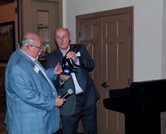 Craig "Nedd" Neddersen (right), chairman of the Door County Visitor Bureau board of directors, presents Jack Moneypenny, President/CEO of the DCVB, with a gift of appreciation recognizing his 10-years as CEO during the tourism organization's 92nd annual meeting on Wednesday October 18, 2017 at Horseshoe Bay Golf Club near Egg Harbor.