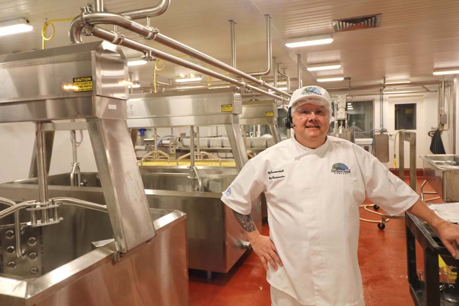 Renard’s Cheese uses milk from dairy farms within 30 miles of the factory, primarily from within Door County. Master Cheese Maker Chris Renard is a third-generation cheesemaker, following in the footsteps of his grandfather and father. Since launching the company in 1961, the production has more than tripled. The factory processes about 90,000 pounds of milk a day and makes more than 50 types of cheese and cheese spreads.