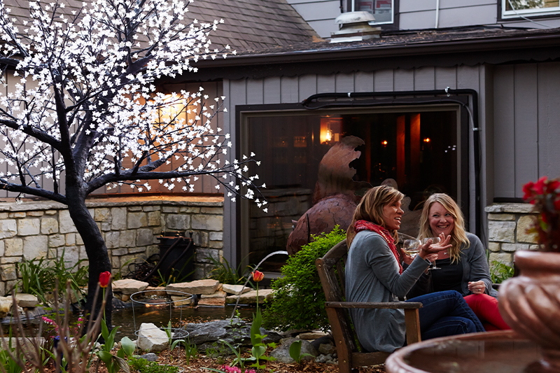You can't miss the English Inn with its two life-sized horse statues at the entrance being ridden by armored knights hoisting torches with real flames. This Door County gem has a beautiful outdoor patio and garden that beckons in warmer seasons, while the cozy interior provides the perfect sanctuary with the feel of an old elegant supper club on chilly fall and winter evenings. The menu boasts an all-you-can-eat fish fry every Friday and delectable classics such as beef wellington, chicken wellington, pistachio-encrusted halibut, white fish oscar, and a sumptuous seafood platter. Rooted in history, the English Inn's origin as a lumber mill a century ago lends it a unique character, with its entrance, bar, and dining room preserving the original charm.